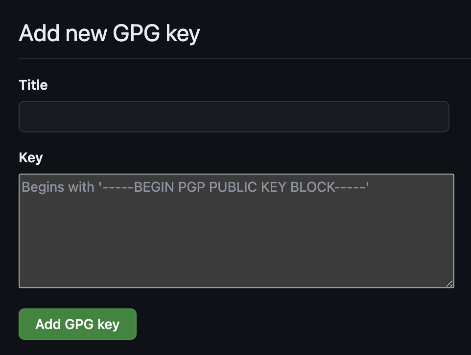 Add new GPG keyをクリックすると、GPGのキーを登録する画面が表示されます。この画面にて、新しいGPGの公開鍵を登録します。