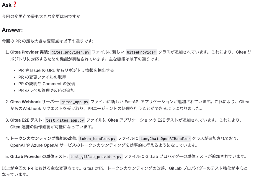 - 質問応答: PRに関する質問に対する自動回答